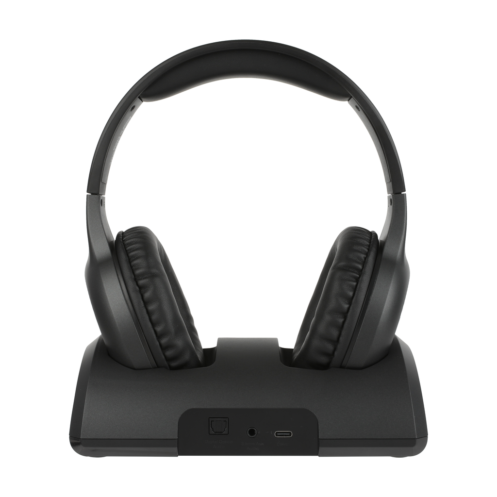 The TV Headphone with Transmitter Base delivers up to 35 hours of playtime and features a convenient transmitter-based charging/docking station. These versatile headphones can also pair with your smartphone when used separately, offering added flexibility beyond the dock. With integrated call functions, they provide an excellent all-in-one solution for immersive TV audio and hands-free communication.